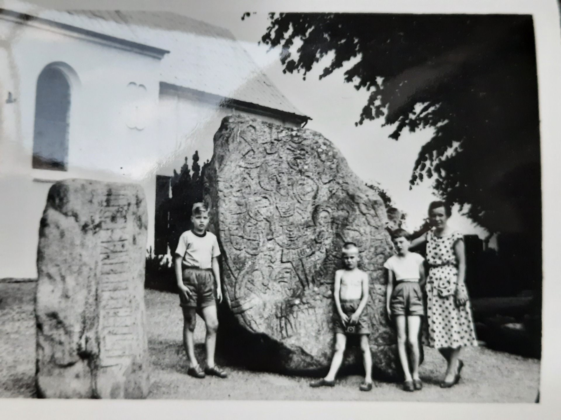 1000 år efter stenen blev rejst besøgte vores familie Jelling i 1958 (?)