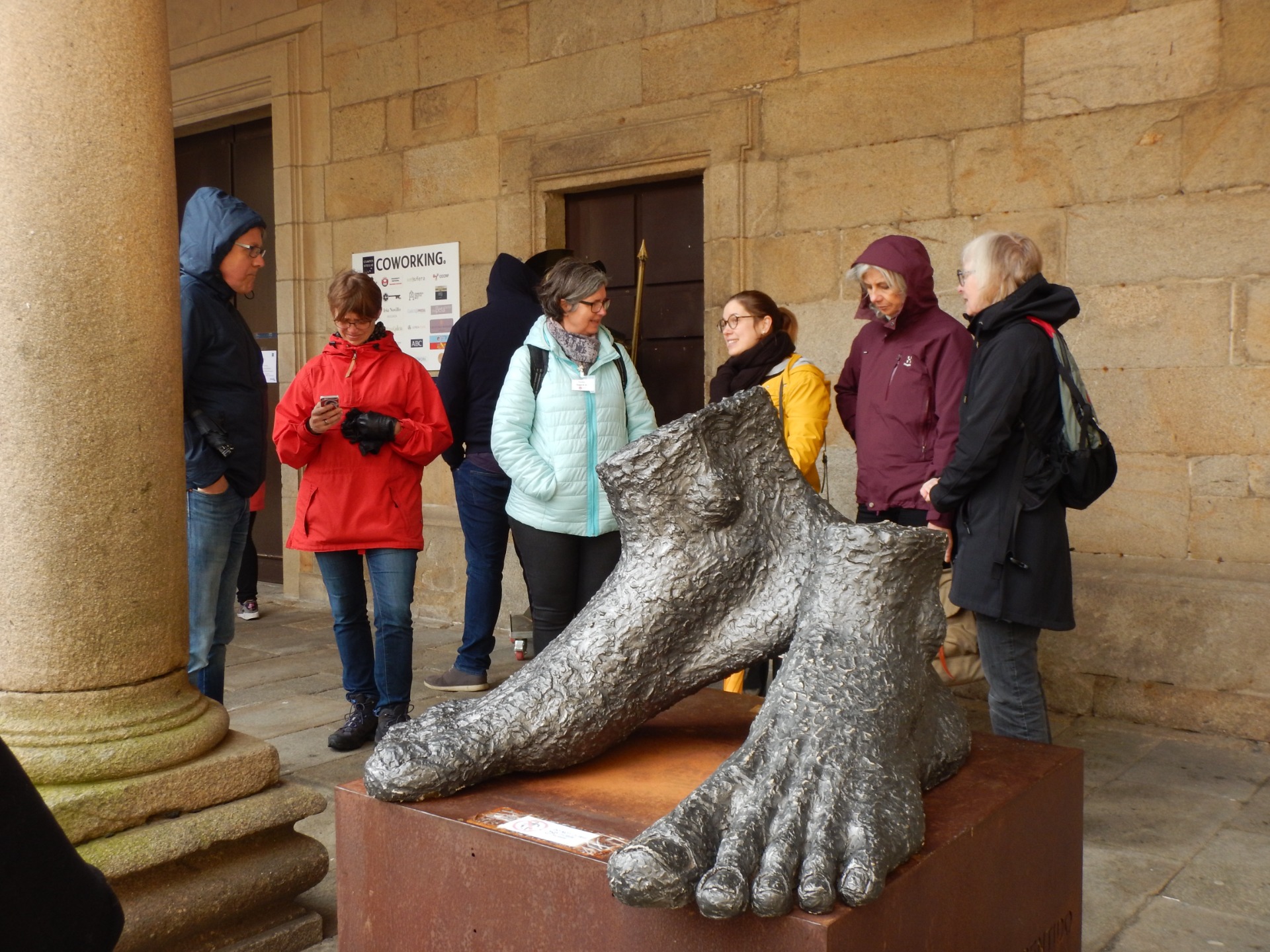 Vi begynder selvfølgelig med at se gå en tur rundt i byen sammen med en lokalguide. Byen har en hyggeligt bymidte – hvor der fortsat bor mange mennesker. Vi ser også domkirken på Praza do Obradoiro. Foran os ser vi dens barokfacade fra 1738-47 og de to tårne, på 76 m, med Sankt Jakob i toppen. Hvilket syn!