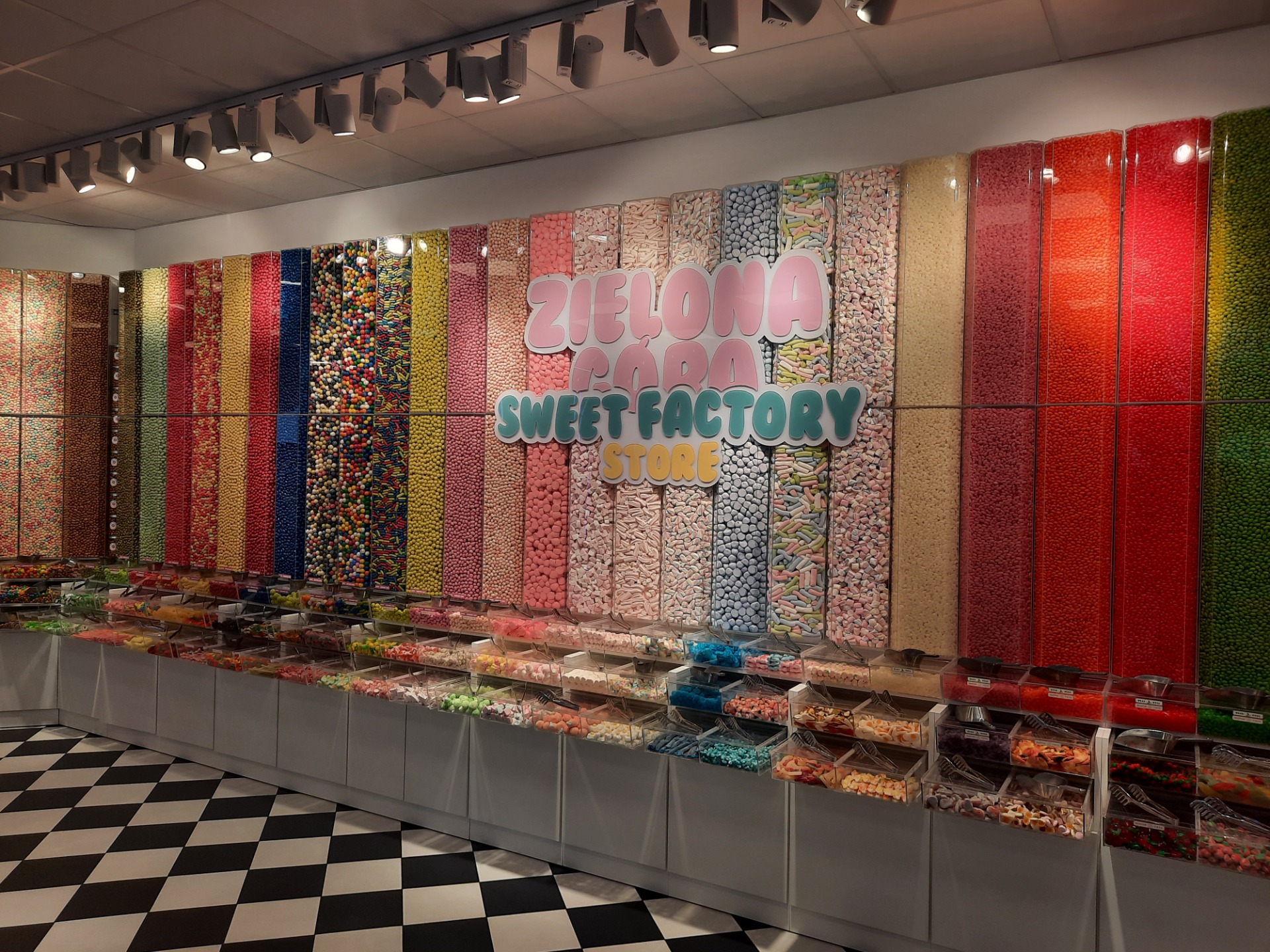 En kæmpe regnbyge væltede pludselig ned - så alle sprang ind i porte og butikker - jeg havnede heldigvis i denne utrolige "Bland selv slik shop"...WOW..Giv lige Nicole 5 min. her!