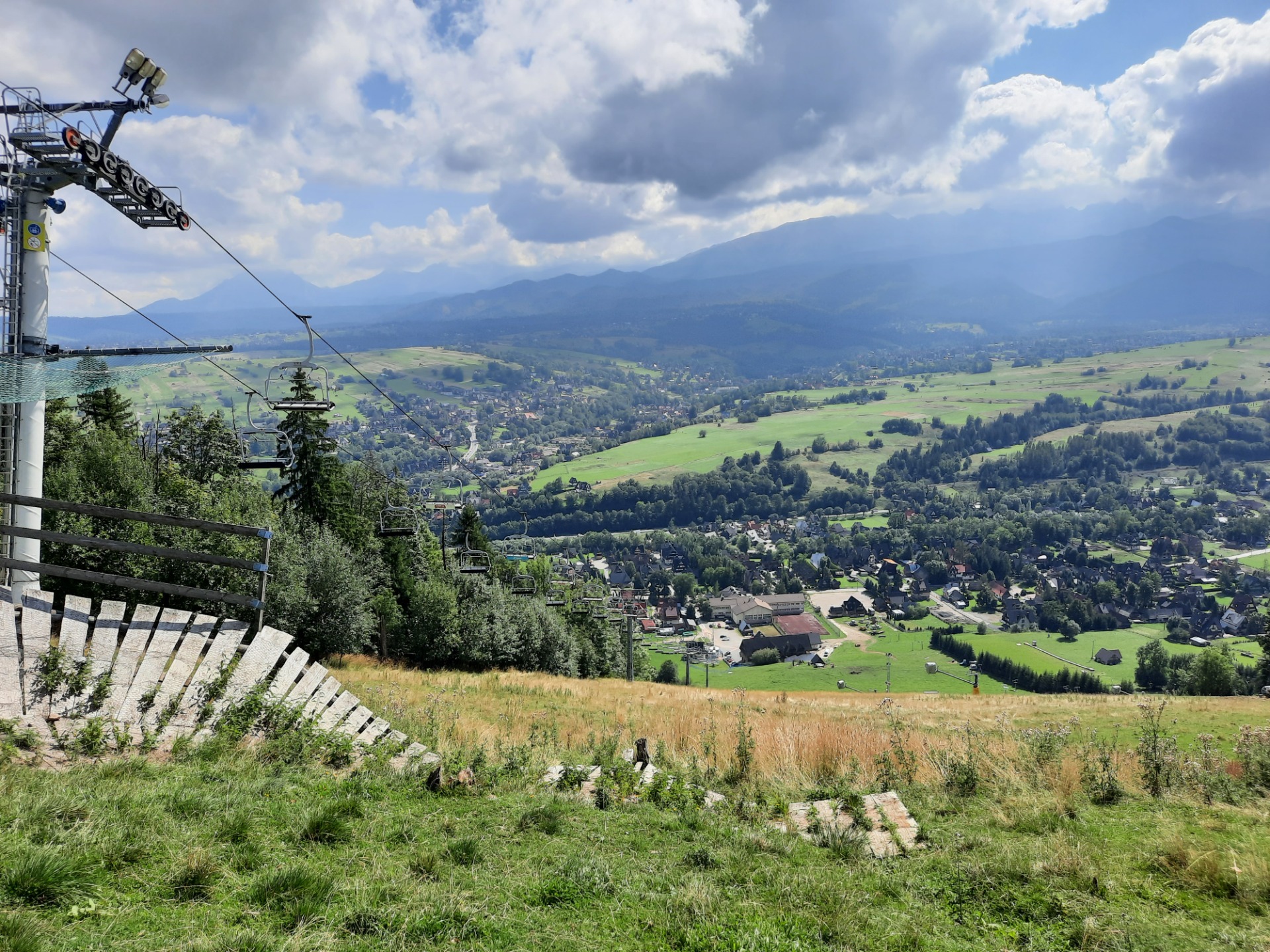 Tatrabjergene og Zakopane er det polske skisportsted, men jo ikke i 33 graders varme, som der er i dag. Bjergene er ikke så høje - dog er der 24 toppe på omkring 2.500 meter - men ikke med skarpe tinder, så der er gode slalompister, selvom det også ser ud som perfekt landrendsterræn. Zakopane er blevet et in-sted for rige og kendte polakker, og jeg må sige at nogle af husene ser enormt imponerende ud - der er ikke sparet på noget.